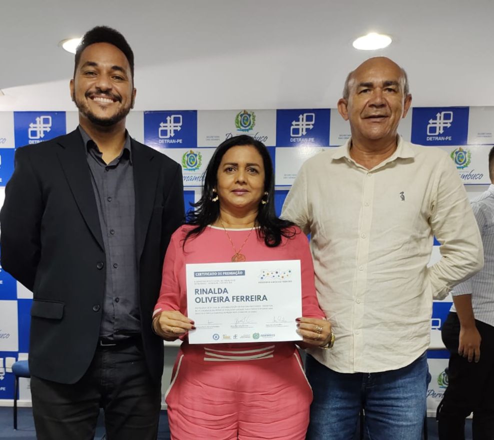 Na manhã de hoje em Recife, a cidade de Goiana foi destaque pelo seu engajamento na educação no trânsito nas escolas municipais. Ao lado do prefeito Eduardo Honório, a professora Rinalda Oliveira Ferreira, coordenadora do Projeto “Amigo do Trânsito” foi premiada pelo DETRAN de Pernambuco pelo trabalho desenvolvido durante o ano com alunos e professores da rede municipal de ensino em Goiana.